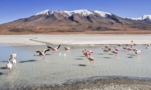 - Die Laguna Colorada, die Lagune Verda und die Laguna Blanca, unterschiedlich gefärbte Lagunen in traumhafter Landschaft.