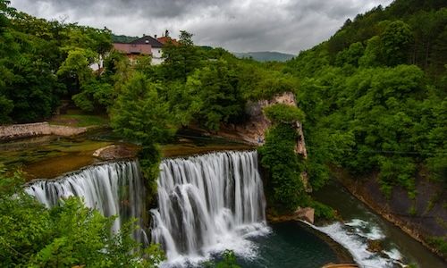 - Der 18 Meter hohe Wasserfall in der mittelalterlichen Stadt Jajce