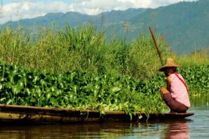 - Der Inle See mit seinen schwimmenden Gärten und den mit einem Bein rudernden Fischern